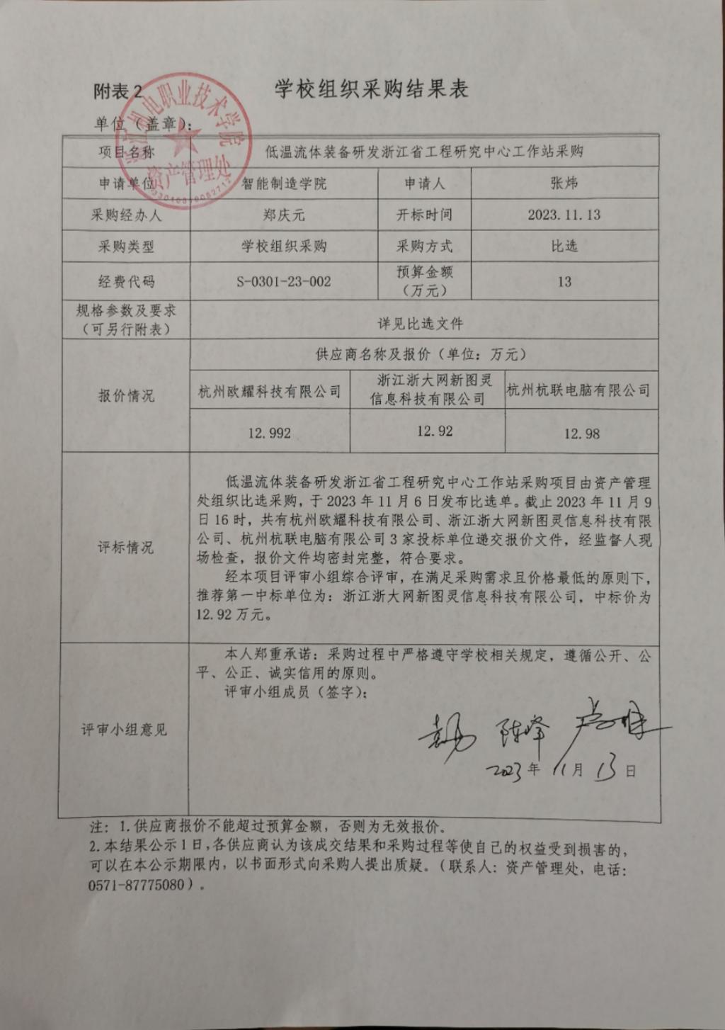 低温流体装备研发浙江省工程研究中心工作站采购结果公示