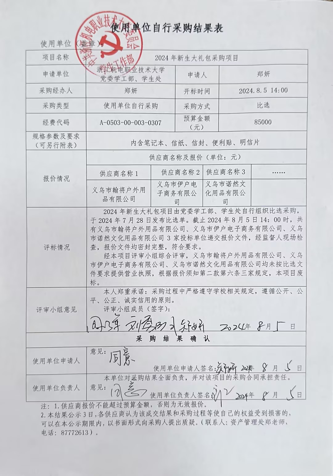 2024年新生大礼包采购项目结果公告