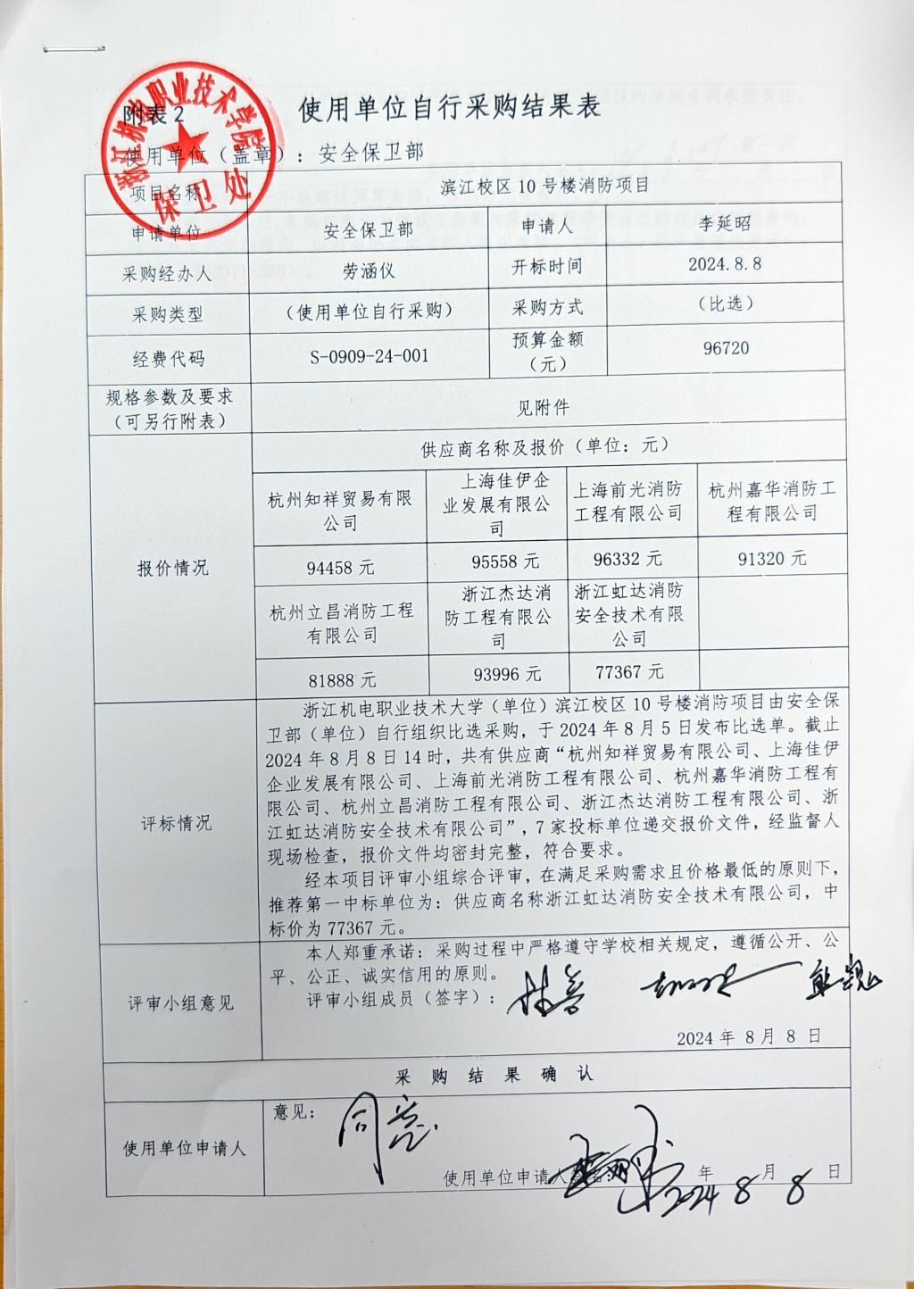 滨江校区10号楼消防项目结果公告
