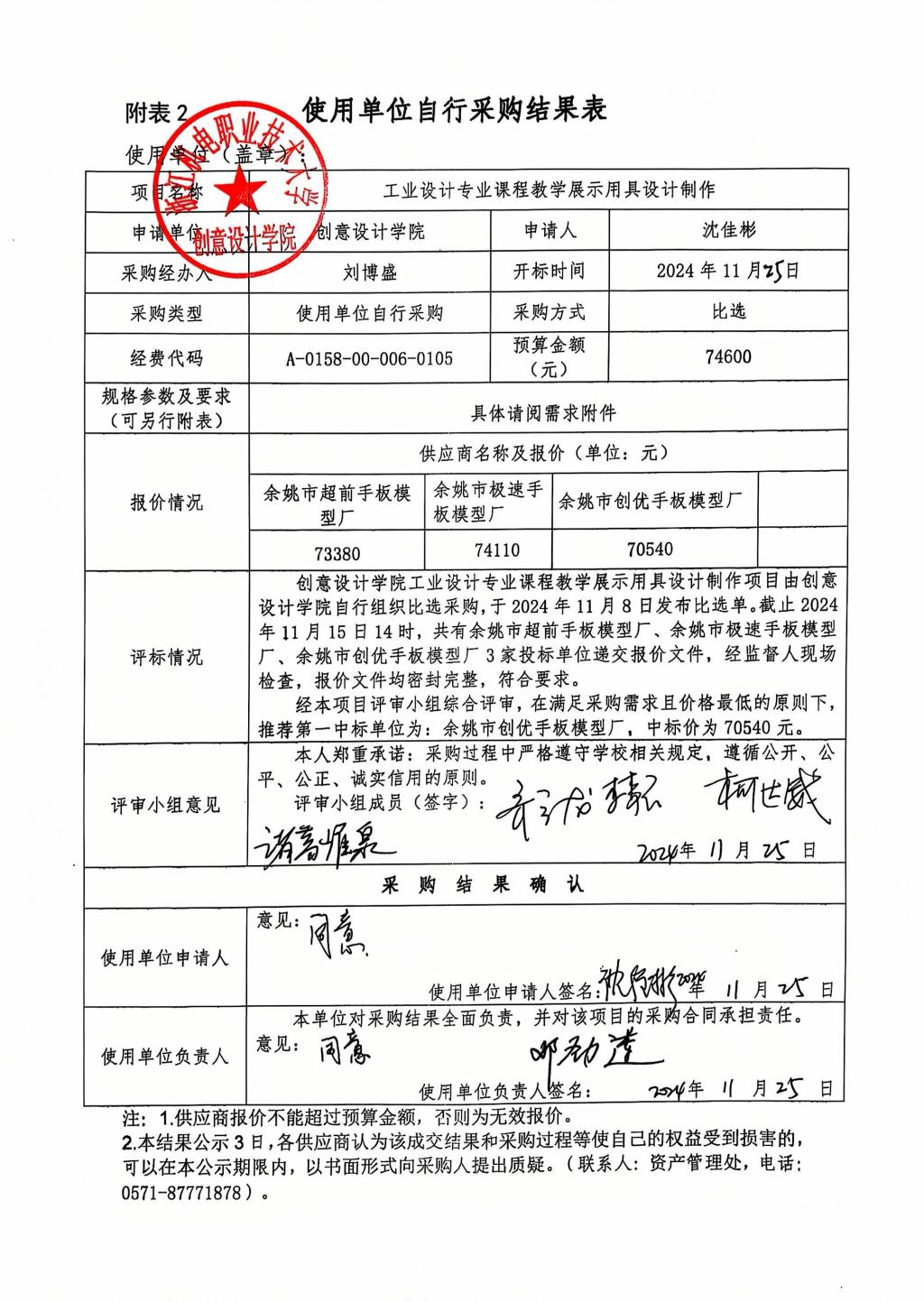 浙江机电职业技术大学创意设计学院工业设计专业课程教学展示用具设计制作项目比选结果公示