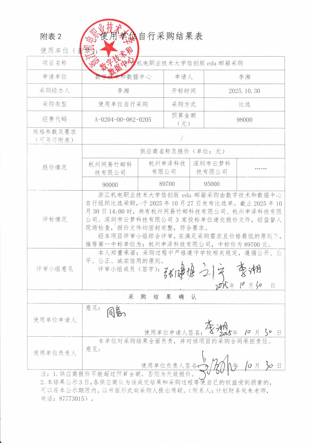 浙江机电职业技术大学信创版edu邮箱采购比选(重新发布)结果公示