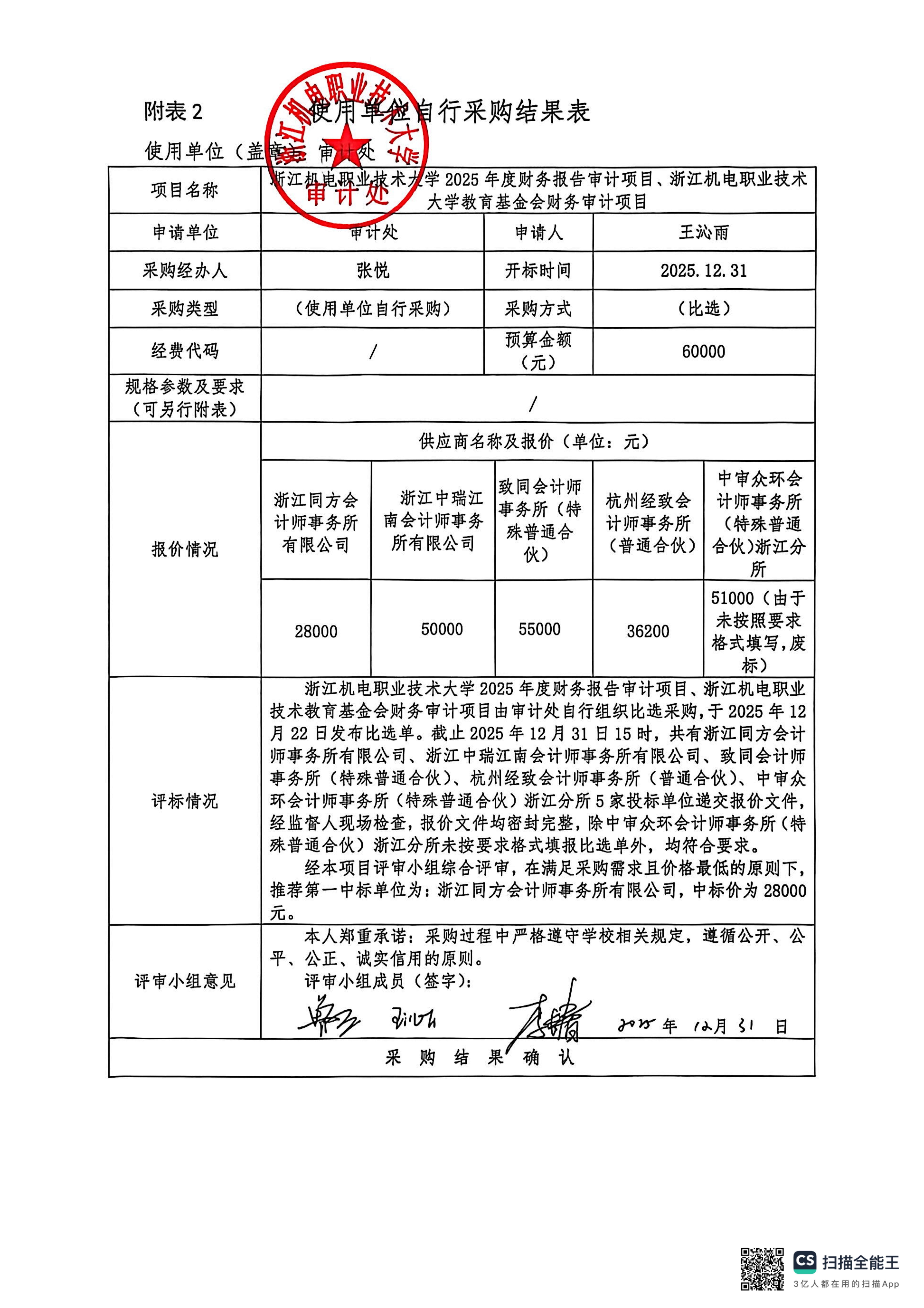 浙江机电职业技术大学审计处2025年度财务报告审计项目、教育基金会财务审计项目采购比选结果公示
